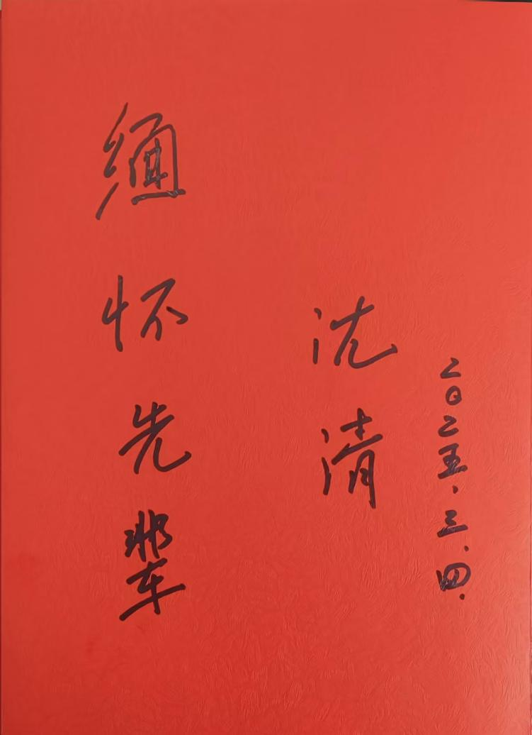参访尾声,周静馆长向沈清赠送《为了正义与和平》特展文创,该展览特别选用周恩来手书字体制作展标,将于3月5日周恩来诞辰纪念日正式开展。沈清在留言簿写下"缅怀先辈",并强调:"2025年是抗战胜利80周年,也是周恩来邓颖超结婚百年,期待与武外教育发展基金会及馆方加强合作,共同讲好革命故事。"马征秘书长也表示,“武外教育发展基金会将充分发挥教育平台优势,与八路军武汉办事处旧址纪念馆深化资源共享,在红色研学课程开发、历史档案数字化保护等领域开展务实合作,让革命精神通过创新形式薪火相传。”