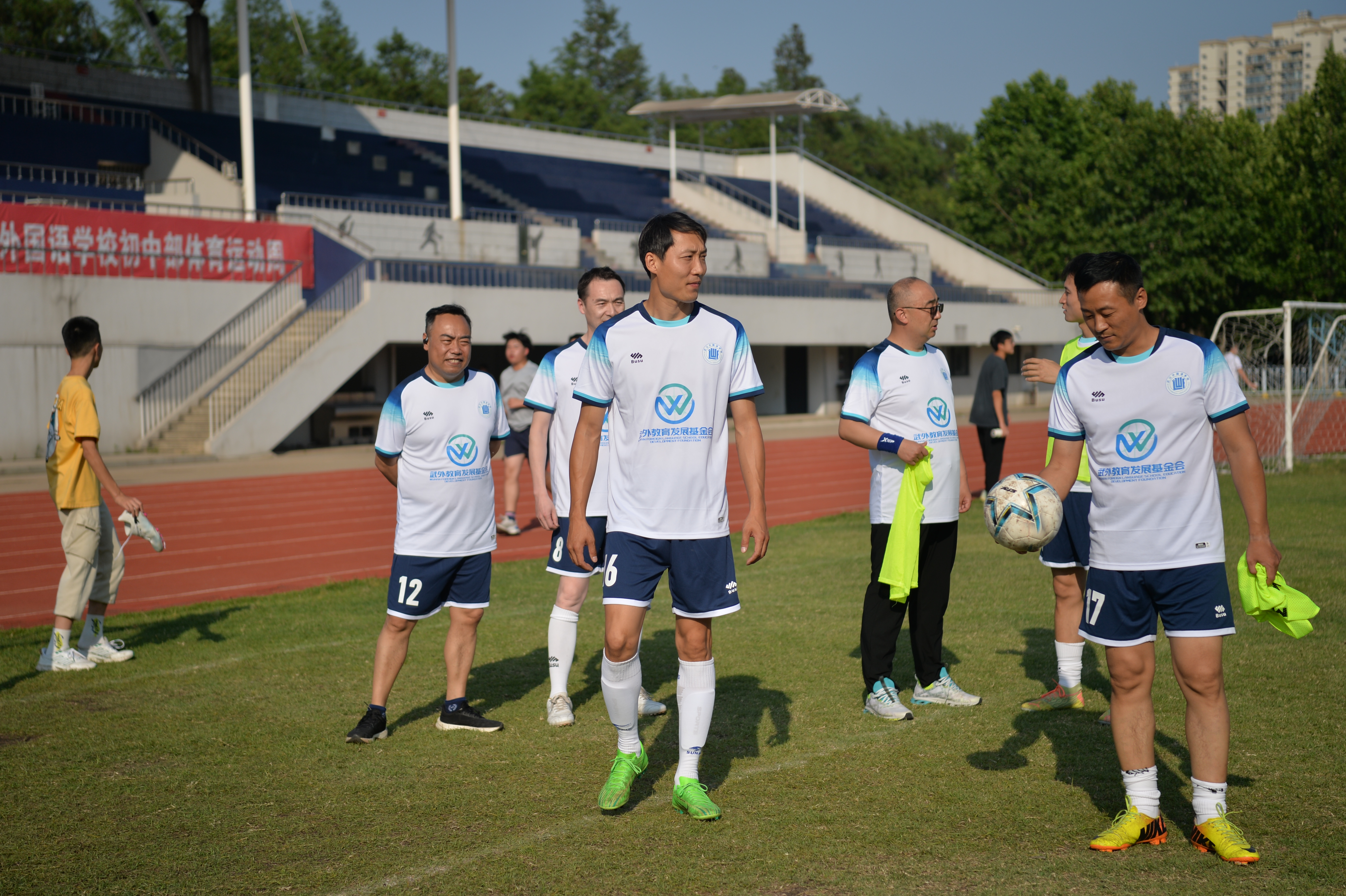 当午后的阳光洒满球场,校友和老师们们身着统一设计的“武外基金会”球衣鱼贯入场,胸前的校徽与基金会大大的LOGO相映成趣。看着熟悉校园,有人摸着足球场的门框感慨:“当年在这儿罚跑五圈不带喘气的,现在十分钟就蔫了!”有校友拉着昔日老师,回忆着曾经的点点滴滴,感叹着环境的变迁。