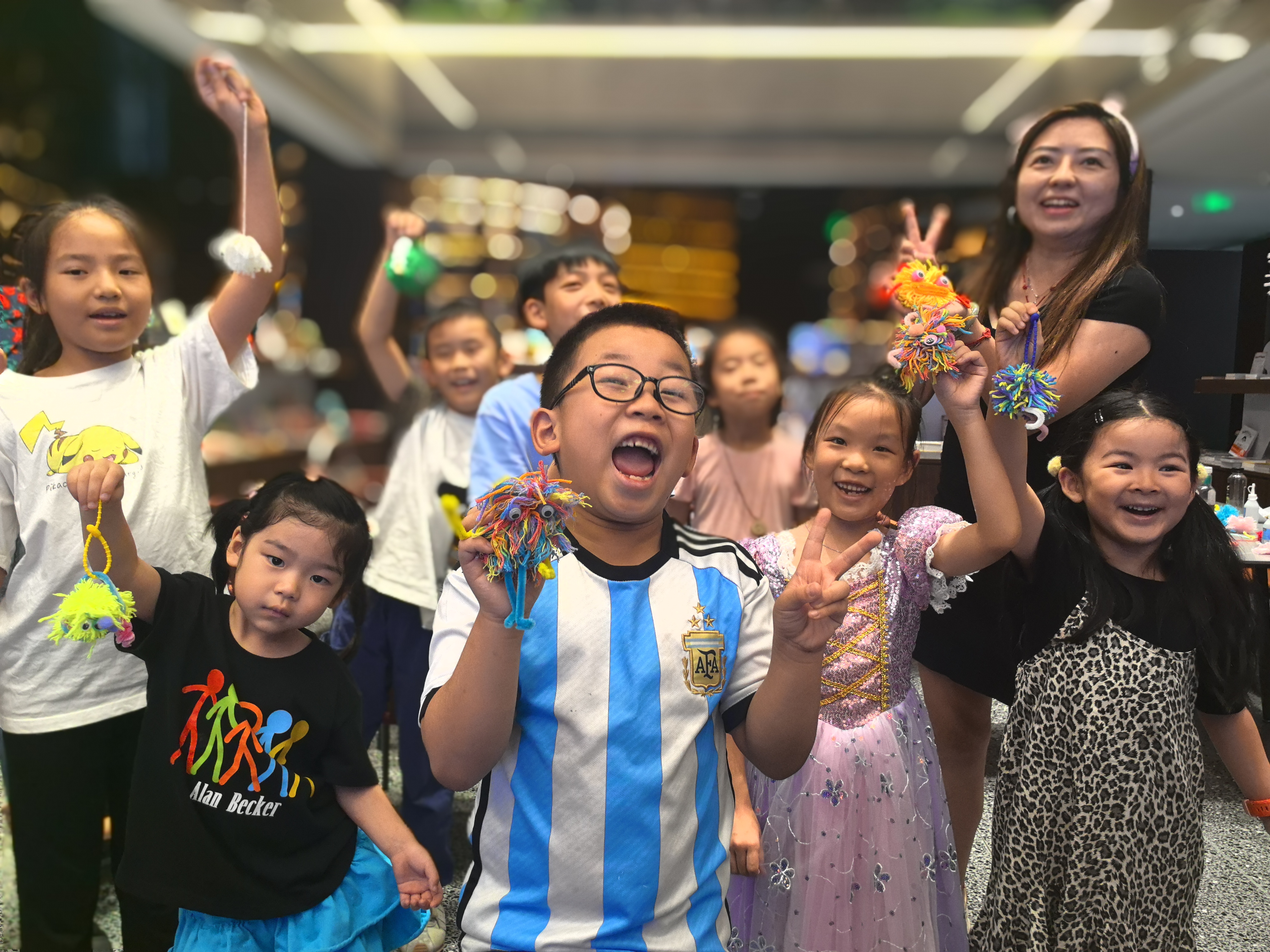 在“毛怪娃娃”手工制作环节,父母带着孩子们一起通过手中的毛线、扭扭棒、“小眼镜”等材料将抽象情绪化为具象化的可爱玩偶,并给它们起了属于自己的名字。