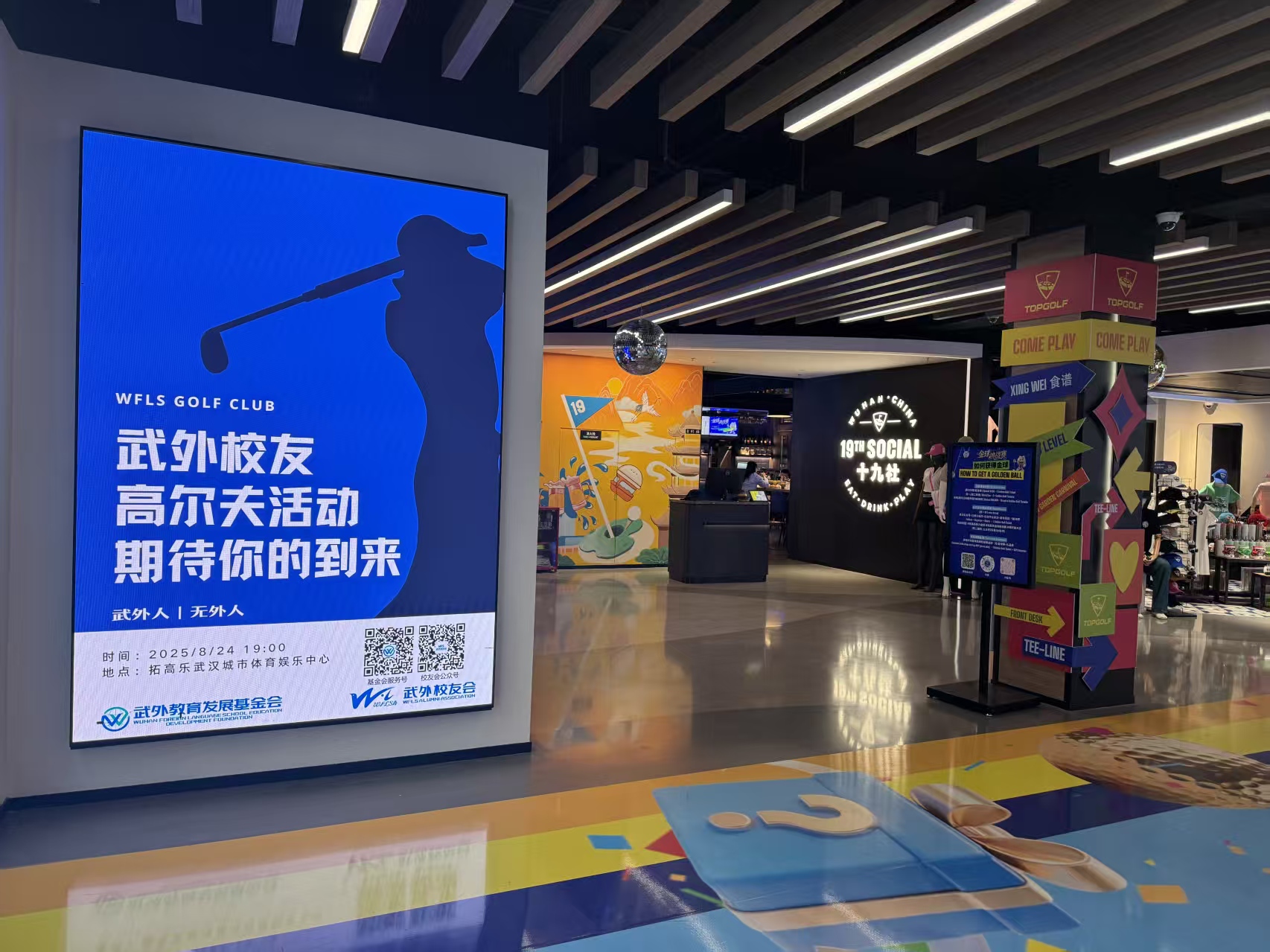2025年8月24日晚,武外校友高尔夫联谊活动在拓高乐武汉城市体育娱乐中心圆满举行。这是一次属于武外人的聚会,更是一场精神与传承的交汇。